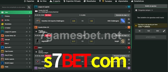 O s7betcom oferece uma grande seleção de opções de apostas em e-sports com probabilidades competitivas